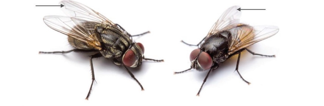 Gambar 1 Lalat wajah betina (kiri) dan jantan (kanan)