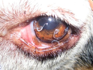 Gambar 5. Mata yang terinfeksi nematoda Thelazia